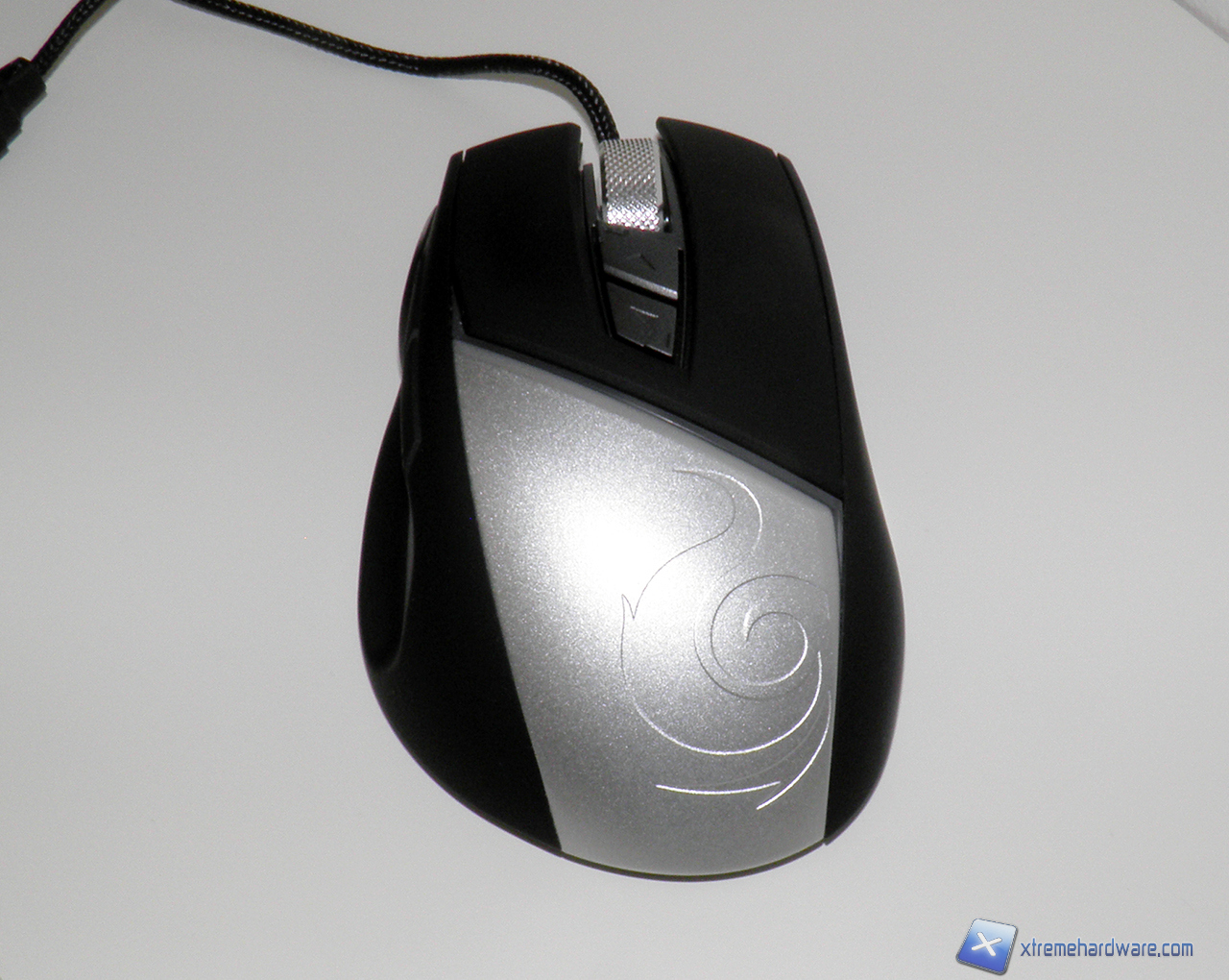 Osservando il mouse dall'alto probabilmente lo scroll luccicante sarà il primo elemento ad attrarre la nostra attenzione, completamente realizzato in alluminio, è caratterizzato da una superficie dentellata al fine di favorire il grip. Molto bella, inoltre, l'apertura nella parte anteriore da cui parte il cavo USB.