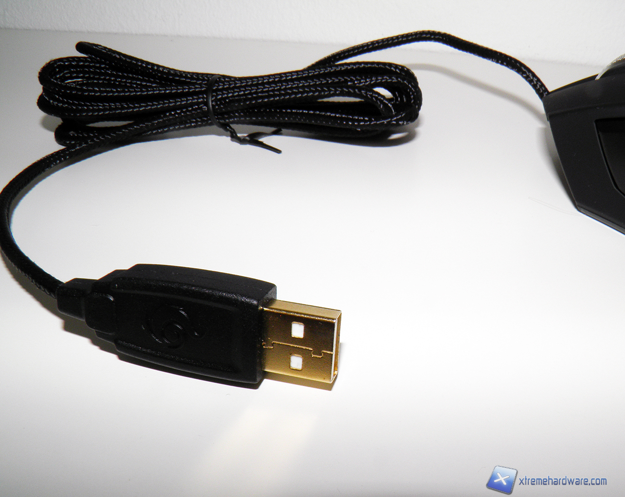 Il cavo è in treccia di tessuto, con connettore placcato oro. Manca il filtro in ferrite anti disturbo, che però ha un ruolo marginale. Possiamo anche notare i due LED frontali.